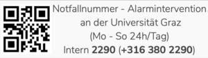 Wenn MitarbeiterInnen der Universität Graz (inkl. Lehrbeauftragte Personen) sich akut in Situationen befinden, die für sie bedrängend, verstörend, bedrohlich wirken, und die sie gegenwärtig nicht eigenständig auflösen können, bietet die Universität Graz eine Notfallnummer für eine Alarmintervention an.