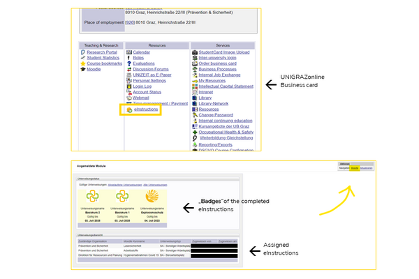 In order to be able to provide a comprehensive proof of instruction at the University of Graz, we ask you to complete the eInstructions on Moodle with the help of Health & Safety. Depending on the work activity at your workplace ("office workplace" or "other workplace"), your supervisor will assign you the modules that must be completed.